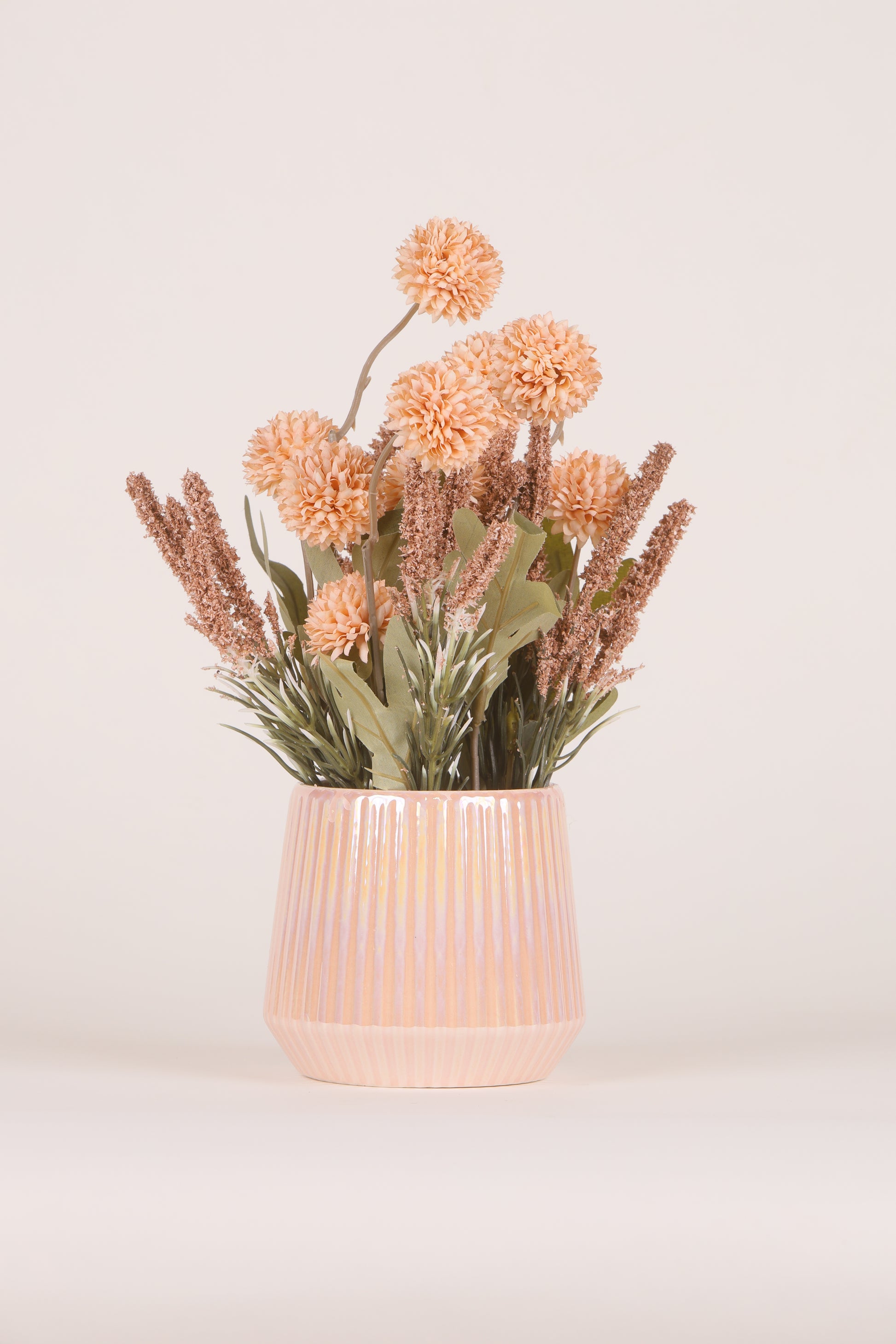 Artificial Chrysanthemum and Marigold Bunch- Pink Ceramic vase