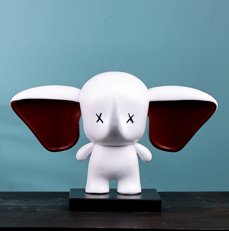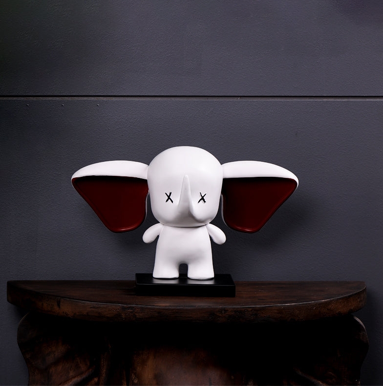 Drunken Elephants a stunning elephant with a quirky twist. Its eyes are whimsically crossed, injecting a playful spirit, while its large red ears stand out boldly against the pristine white backdrop. This striking piece exudes beauty and elegance, making a bold statement in any space. Ideal for those who appreciate distinctive décor that captivates with its unique charm and refined aesthetics.