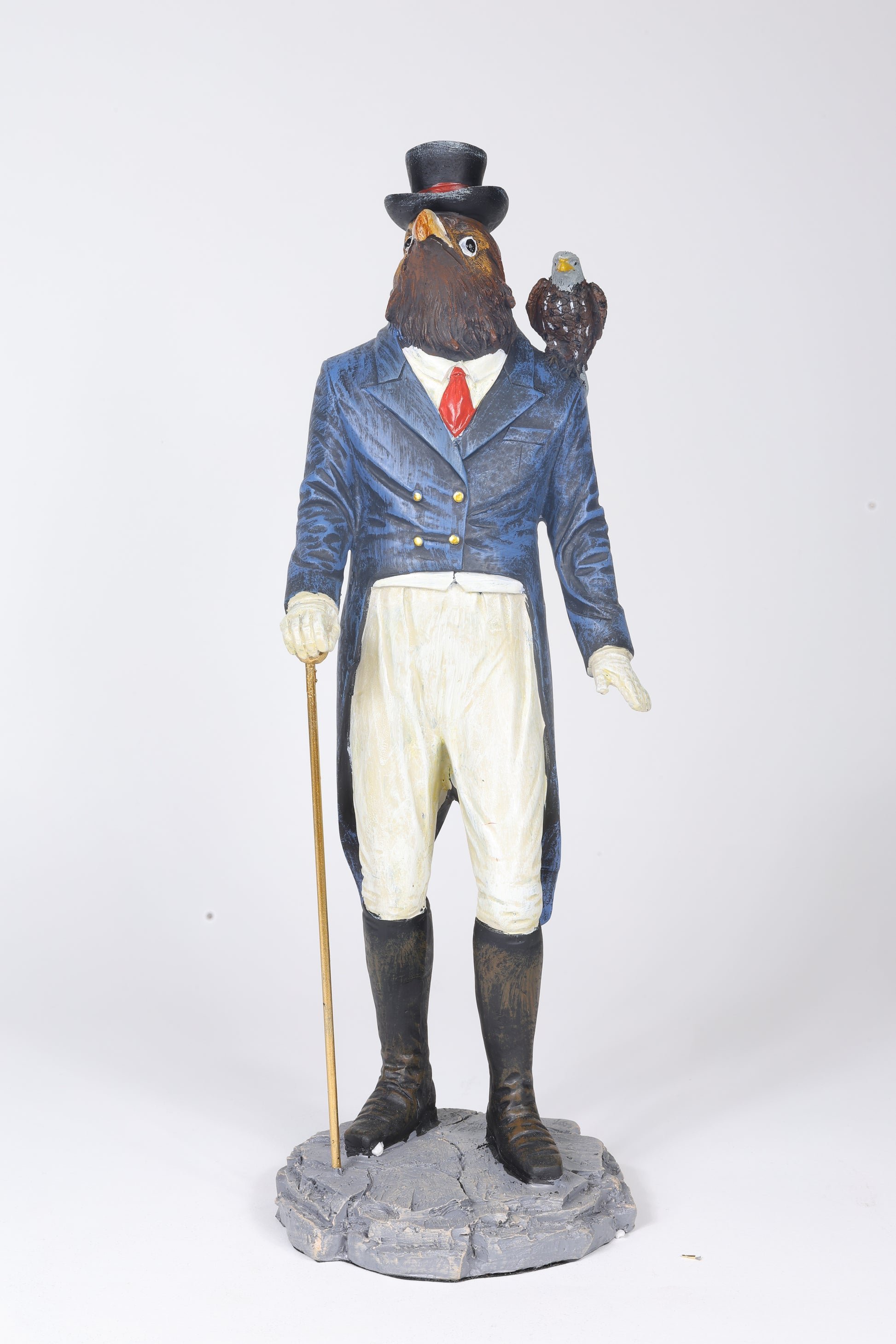 Introducing the one and only Eagle Figurine from the winged tycoon's collection, Urban Wilds. This imposing statue, in the form of a human sailor with a long blue coat and a stick in hand, is made of durable polyresin. A conversation starter and centre of attraction, perfect for living rooms and gifting.