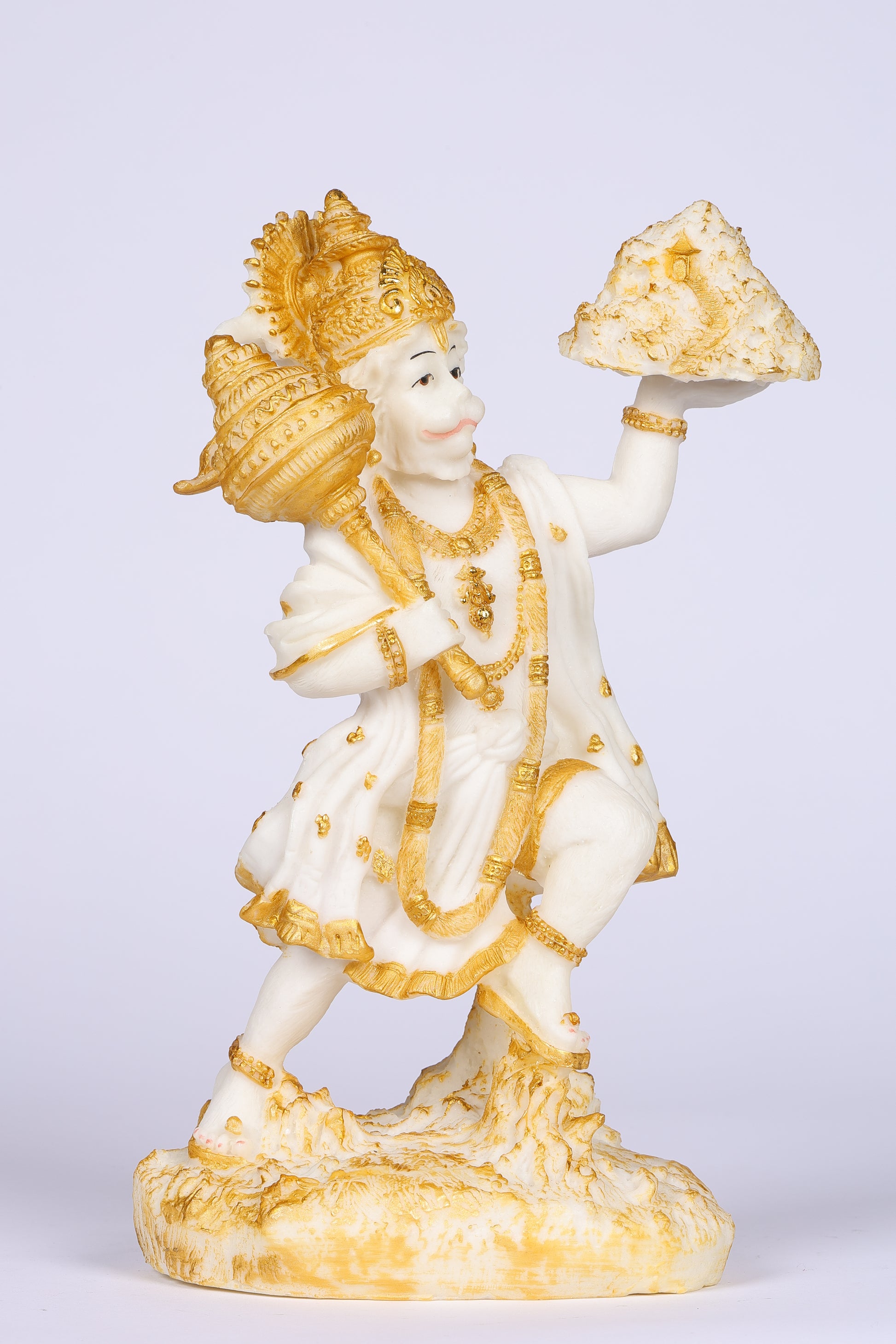 11" Hanuman Pawansut Mahabali standing Marble statue with Parvat | Ideal for temple or showpiece