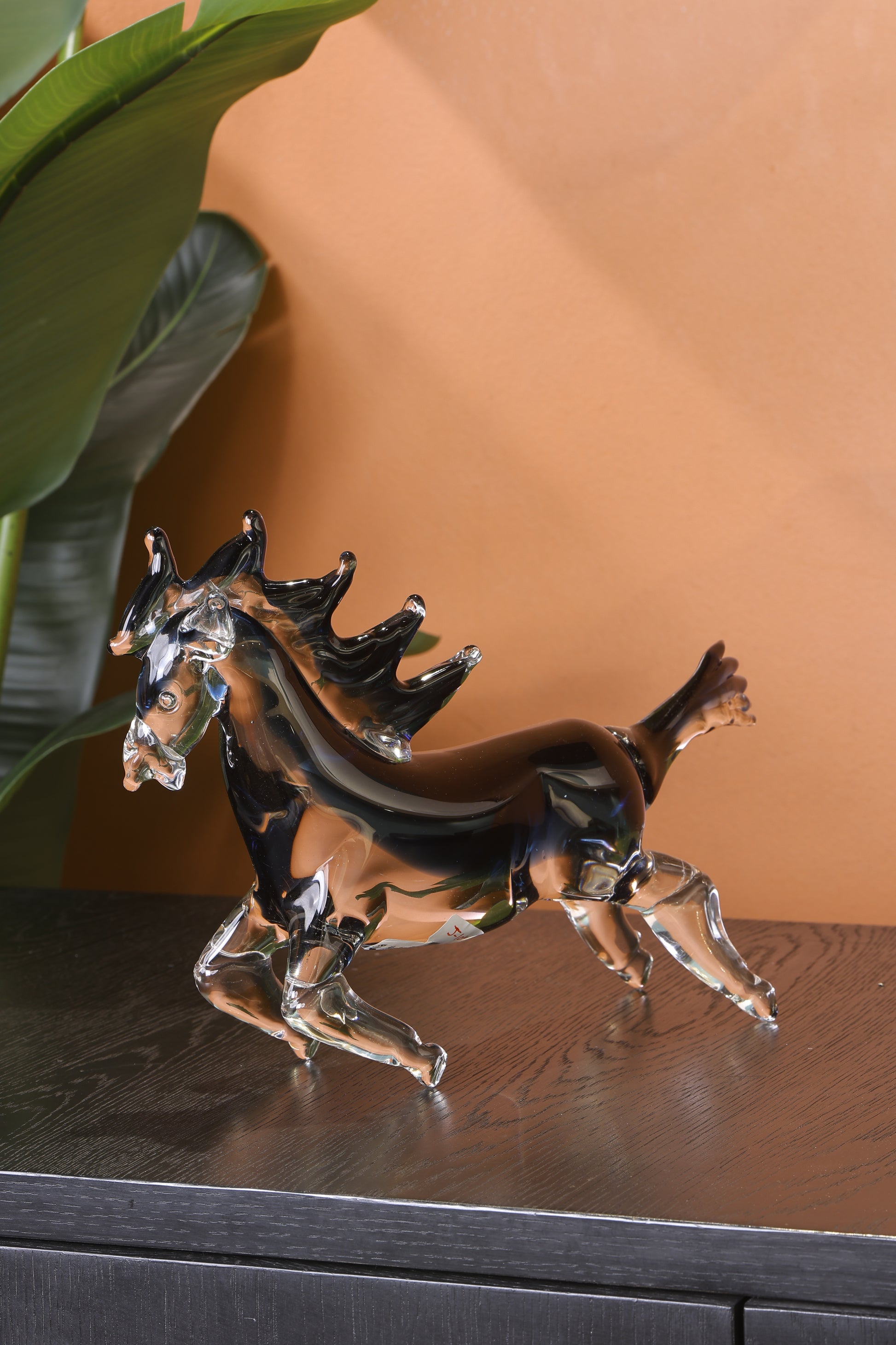 Stunning Crystal Sculpture Running Horse Statue Home Decor Accent - Blue