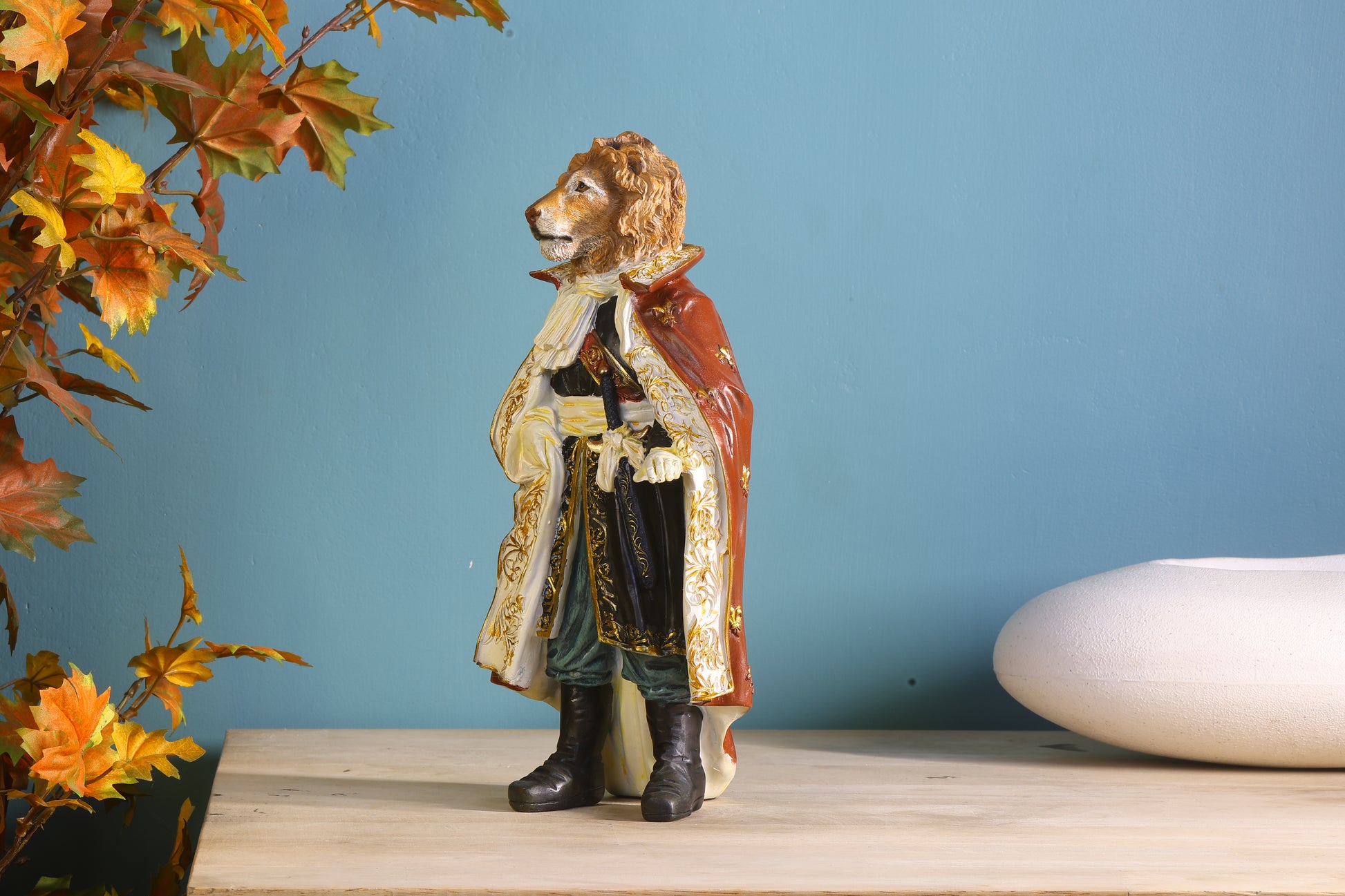 Introduce a touch of the wild to your urban space with this Lion Figurine. Featuring a king lion in human form, its long coat and sailor's hat make it a unique conversation starter and the perfect centrepiece for your living room. Made from durable polyresin, it also makes for a great gift.