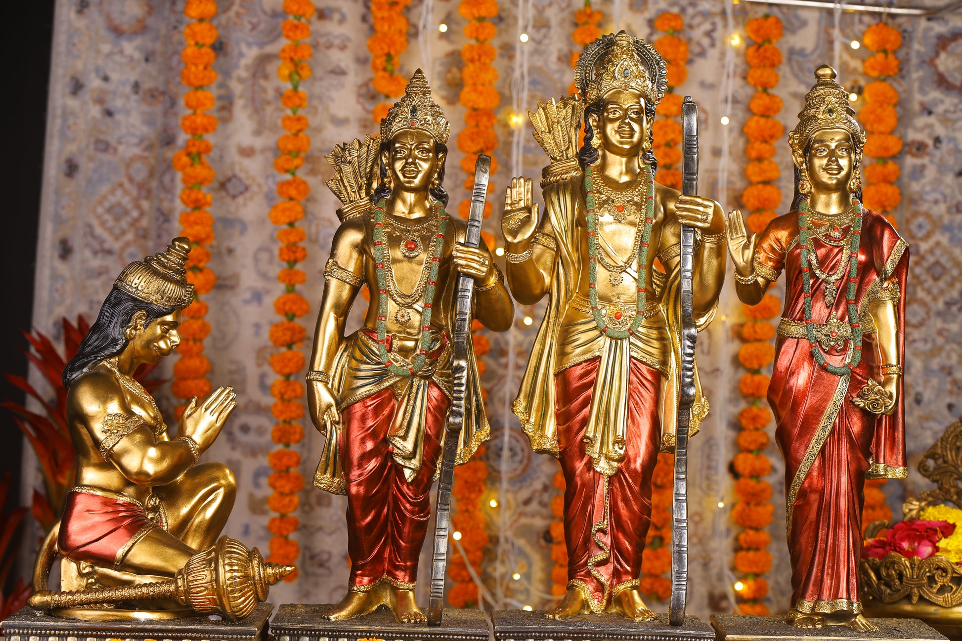 23" Ram Darbaar Antique Finish golden red statue - Shree Ram Ma Sita Laxman And Hanuman Darbar Idol for home temple