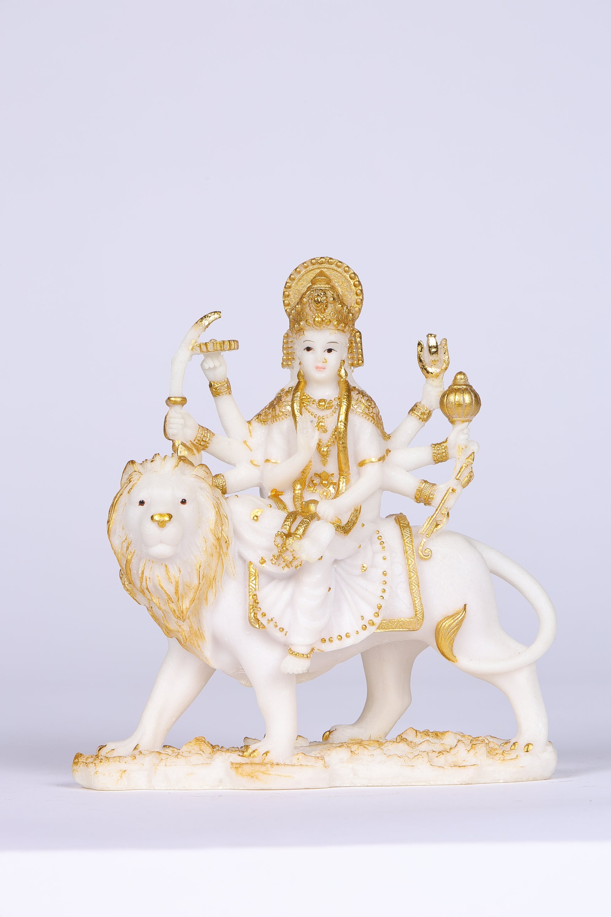 6" Maa Sherawali Jagdambe Durga Ji Marble statue with Gold tone| Ideal for temple or showpiece